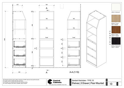 Order a Reach-In Wardrobe Package, which includes an assembled tower, top shelf, supports, hanging rail, and support brackets. Use this drawing to record your order details, then email it to sales@centralcabinets.co.nz or drop it off at our Alexandra factory.